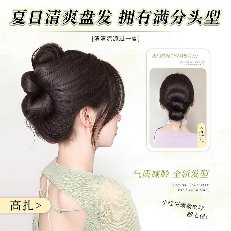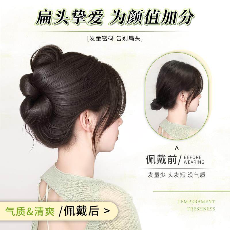 丸子头假发抓夹气质花苞盘发神器发包扁头饱满后脑勺发圈发型蓬松