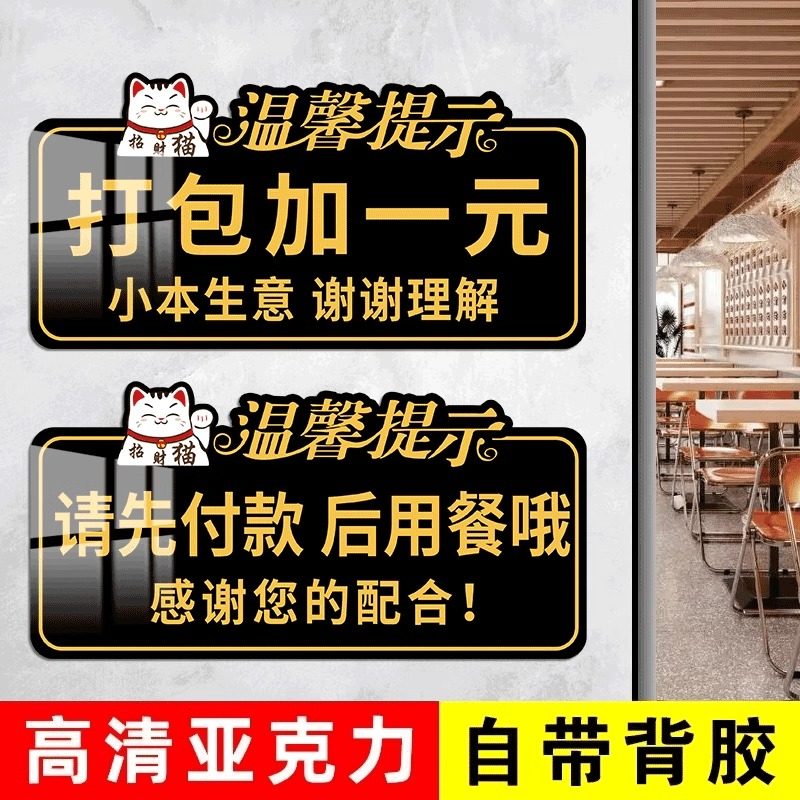 打包加一元提示牌贴纸免费自取餐具标牌餐具收费提示牌餐饮店打包