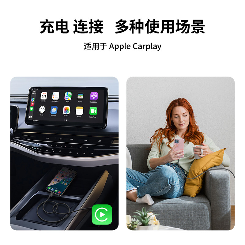 磁吸车载CarPlay充电线双头Type-C数据线贴贴线PD100W快充线适用平板iPad苹果15-17promax华为小米手机