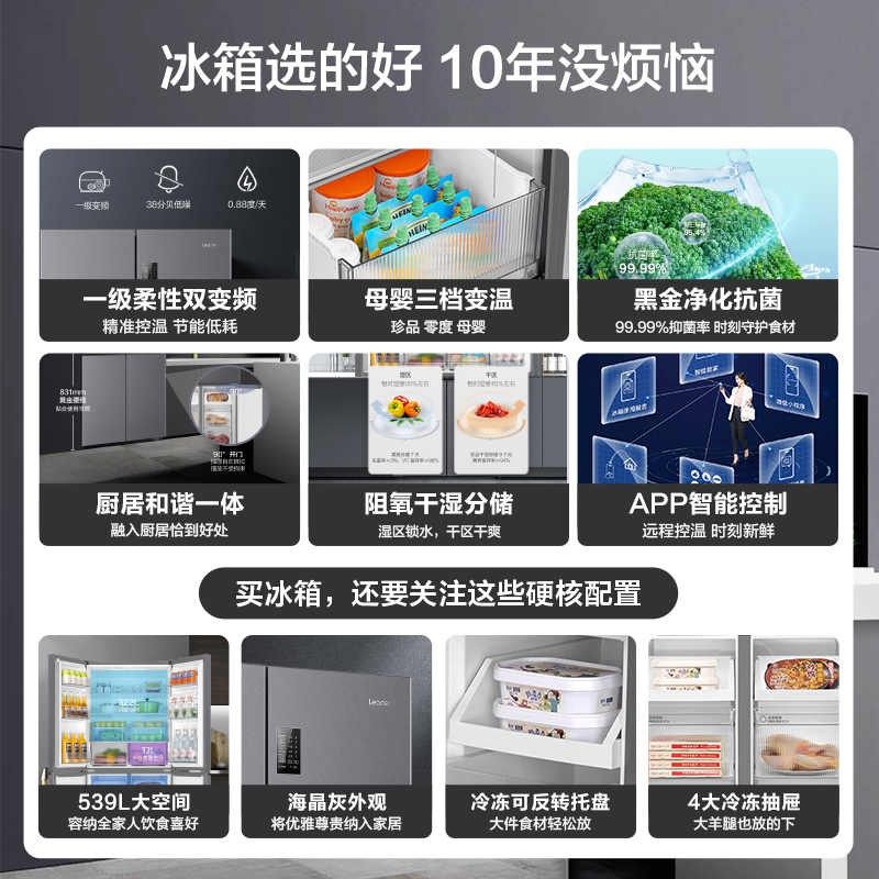 海尔冰箱Leader539升大容量家用十字四开门一级能效无霜官方旗舰