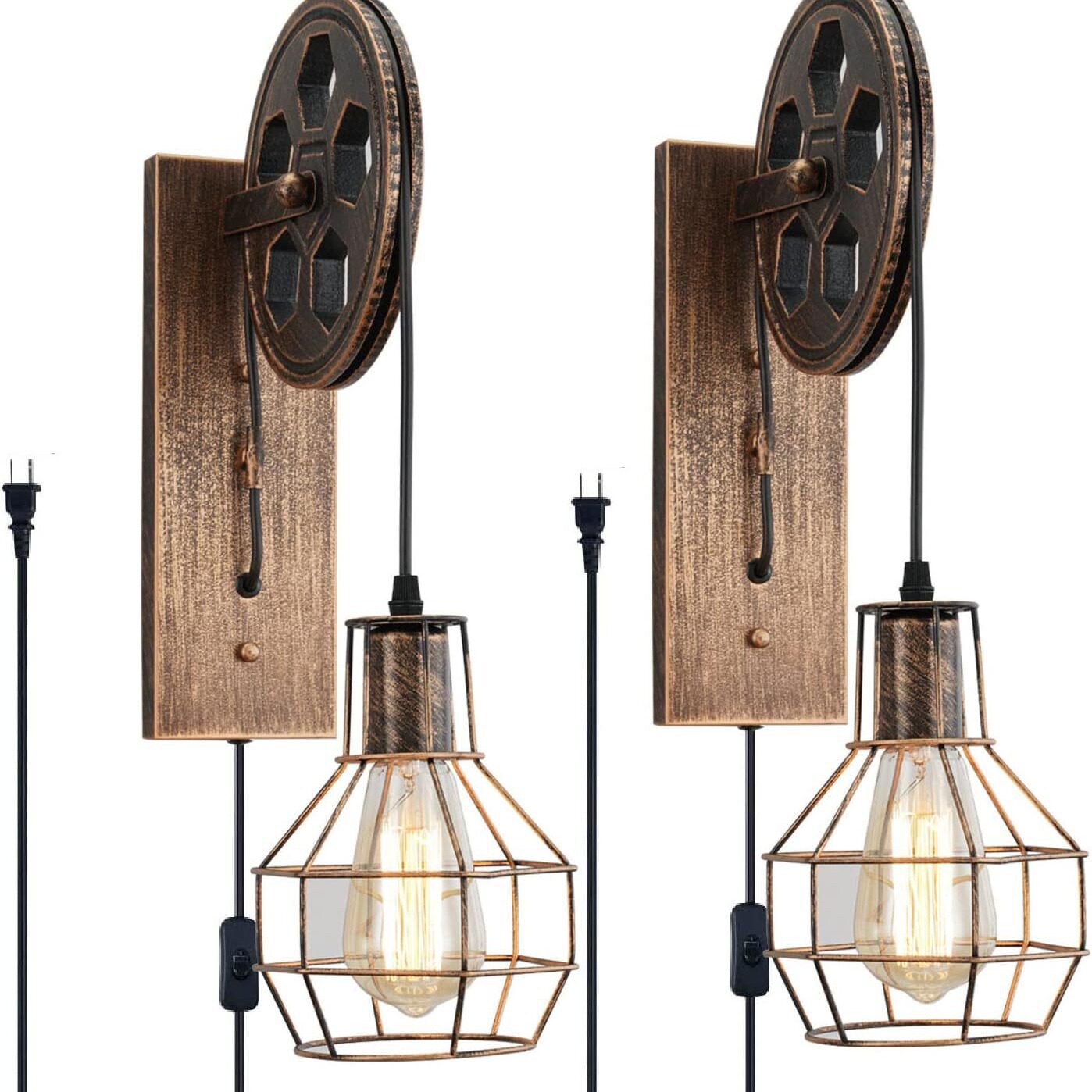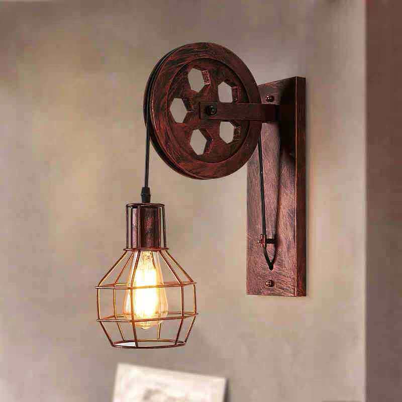 壁灯床头氛围感室内壁灯复古工业风滑轮升降卧室楼梯灯客厅过道灯