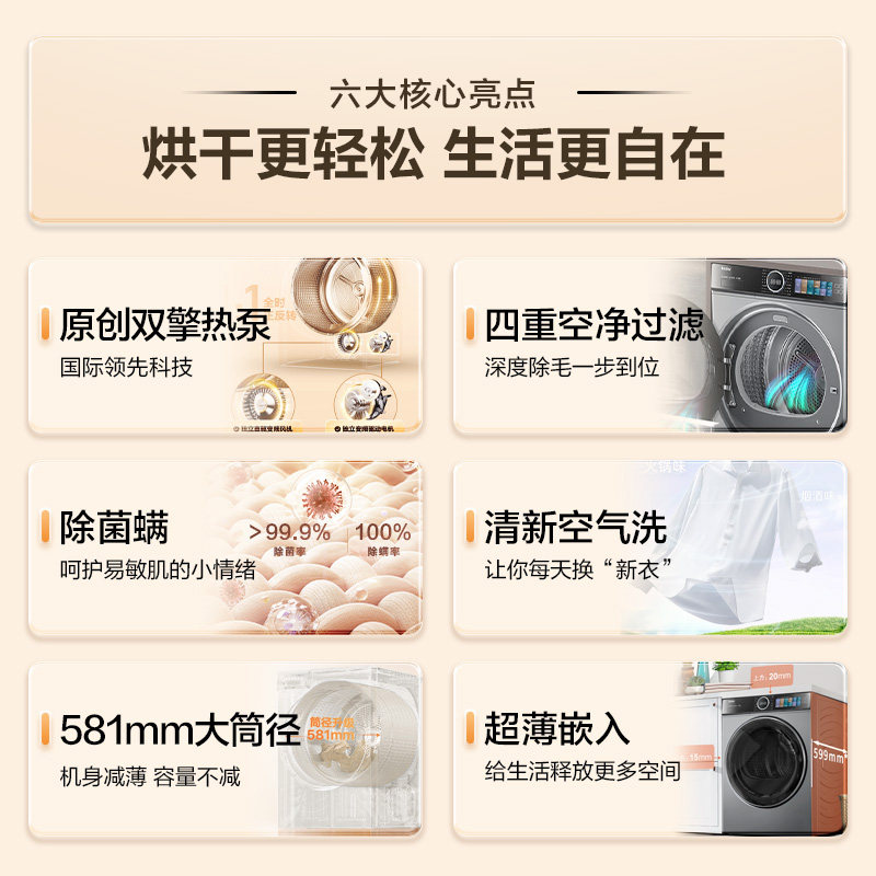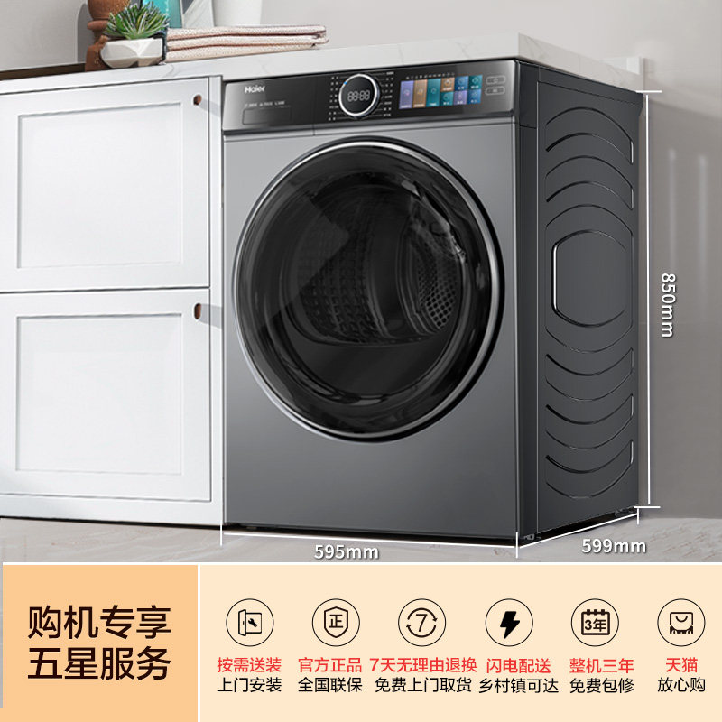 云溪4.0 海尔热泵烘干机579家用全自动10kg变频干衣机77E双擎烘衣