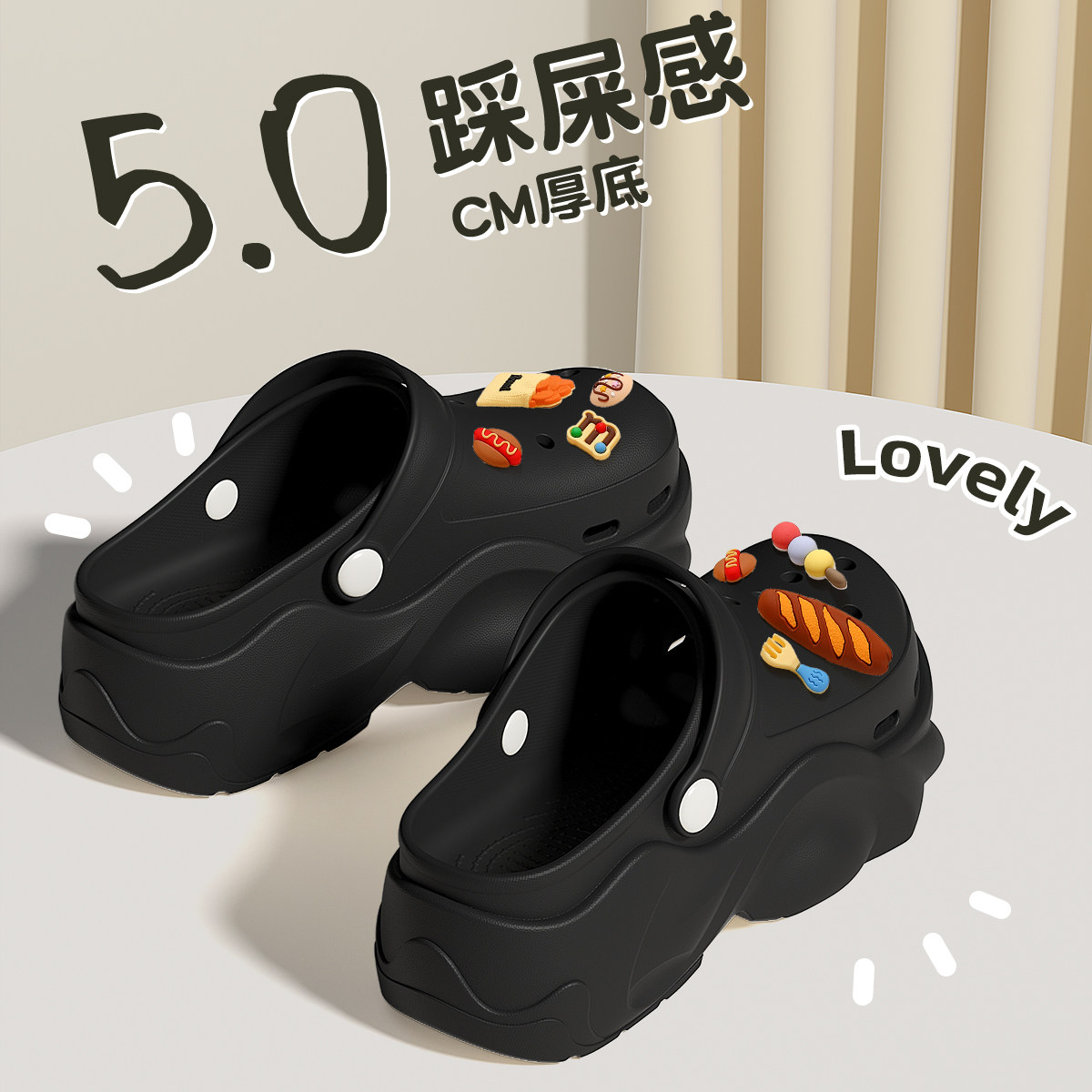 红豆厚底增高洞洞鞋女款夏季外穿2026新款海边沙滩eva拖鞋女防滑