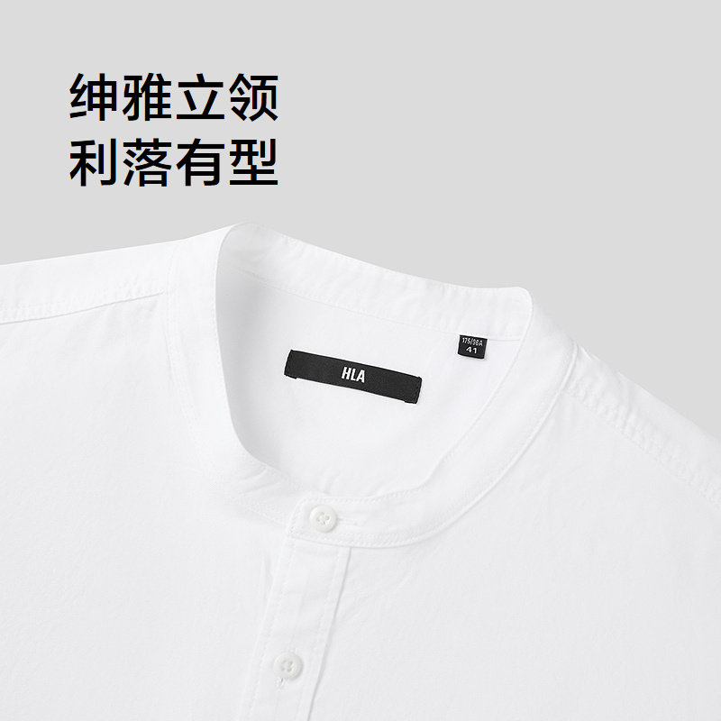 HLA/海澜之家雅致短袖休闲衬衫2026春夏新款绅雅立领纯棉衬衣男