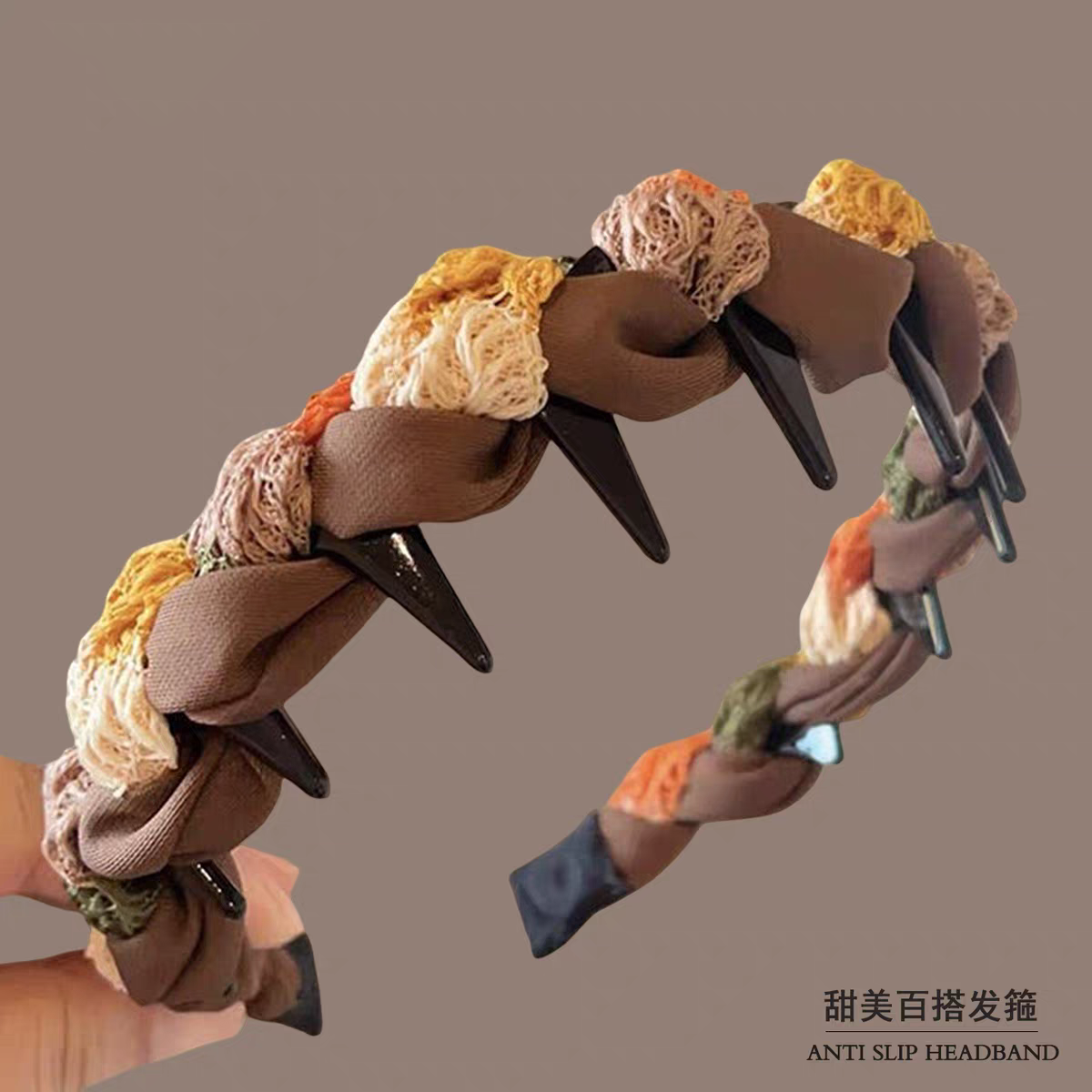 美拉德咖色波浪高颅顶发箍女款日常外戴头箍带齿防滑洗脸压发发卡