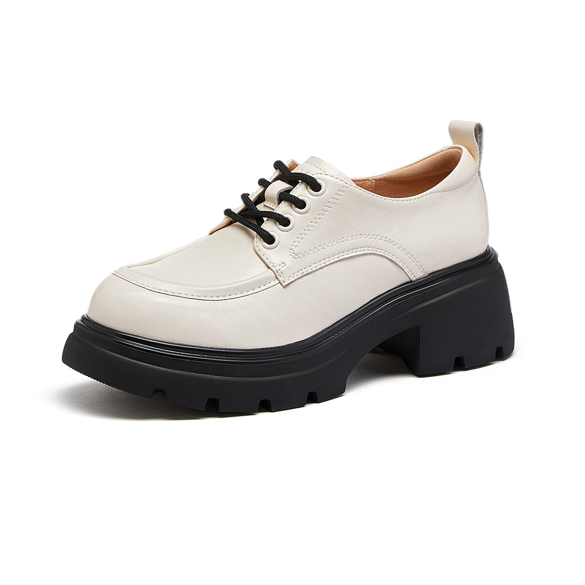 欧货真皮厚底小皮鞋女英伦风圆头加绒德比鞋小个子增高乐福鞋单鞋