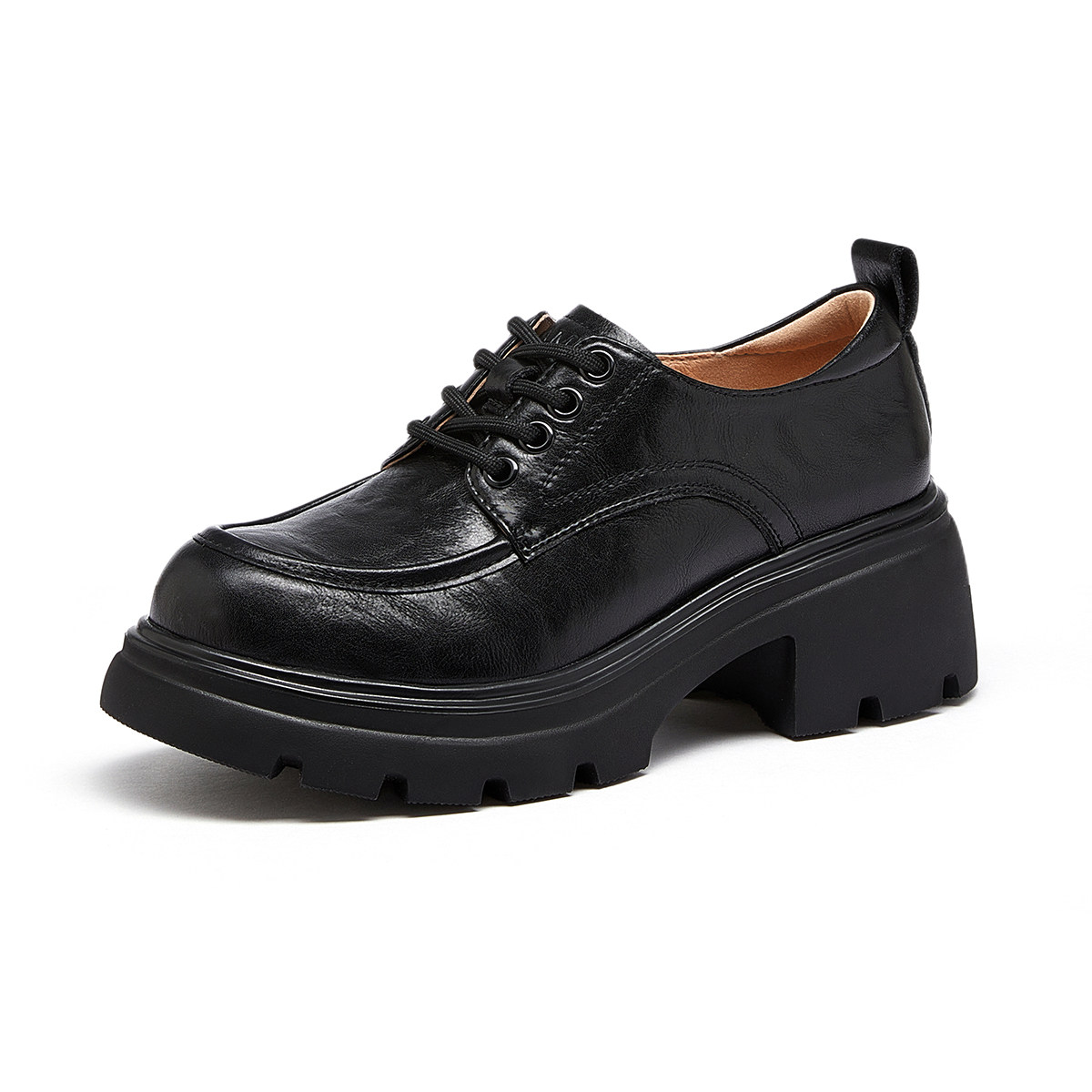日泰头层牛皮女单鞋秋季厚底小皮鞋百搭通勤鞋妈妈软底真皮乐福鞋