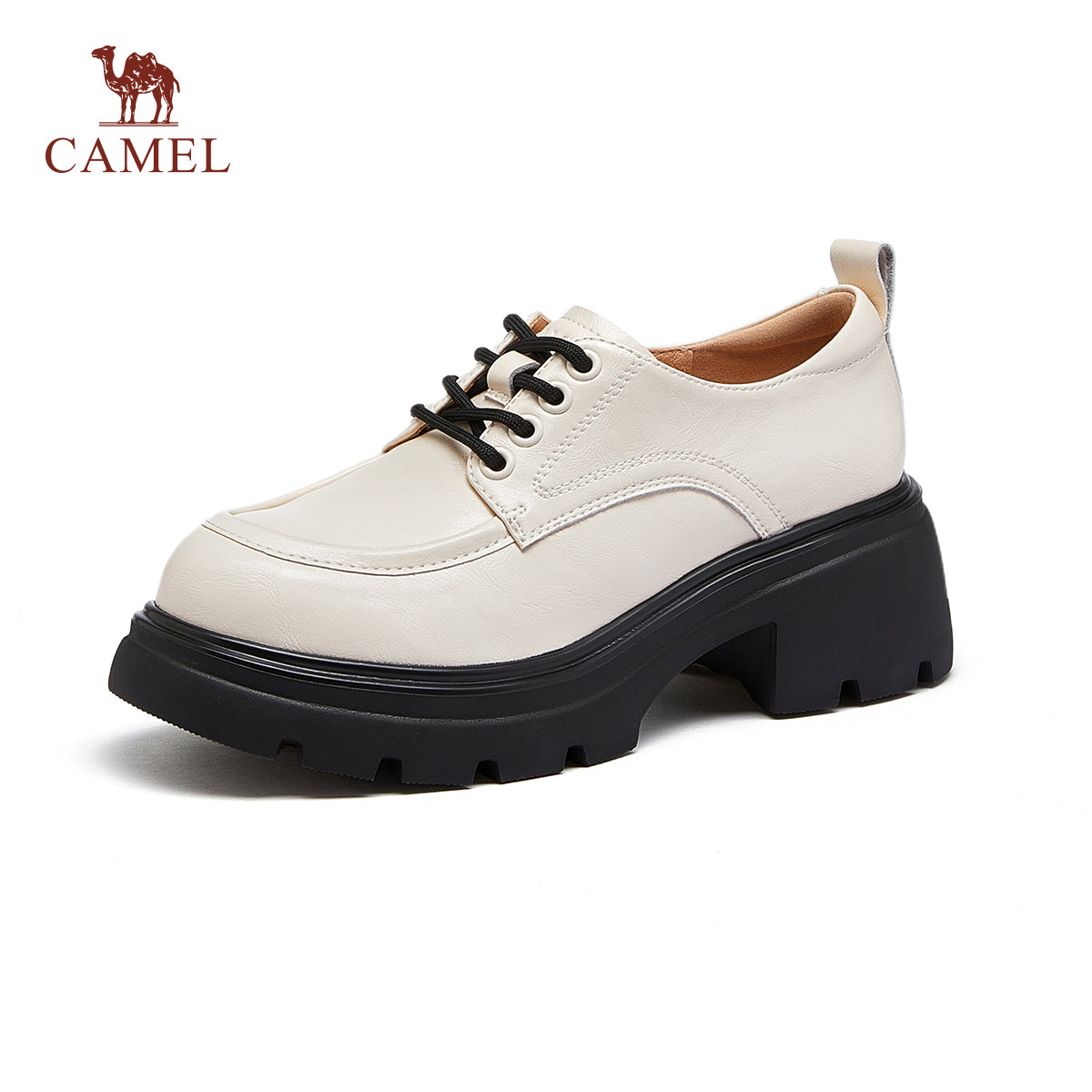 骆驼女鞋2026早春新款休闲鞋复古粗跟厚底小皮鞋玛丽珍乐福鞋女