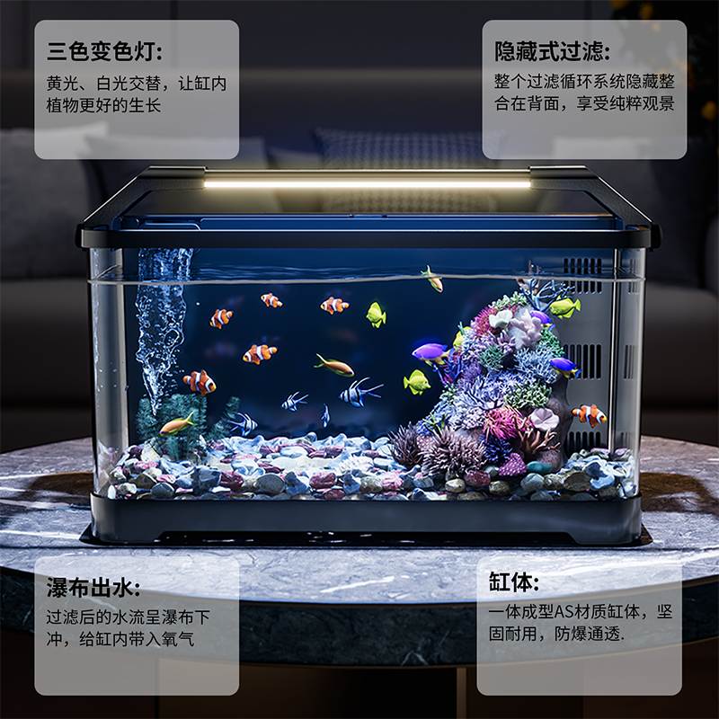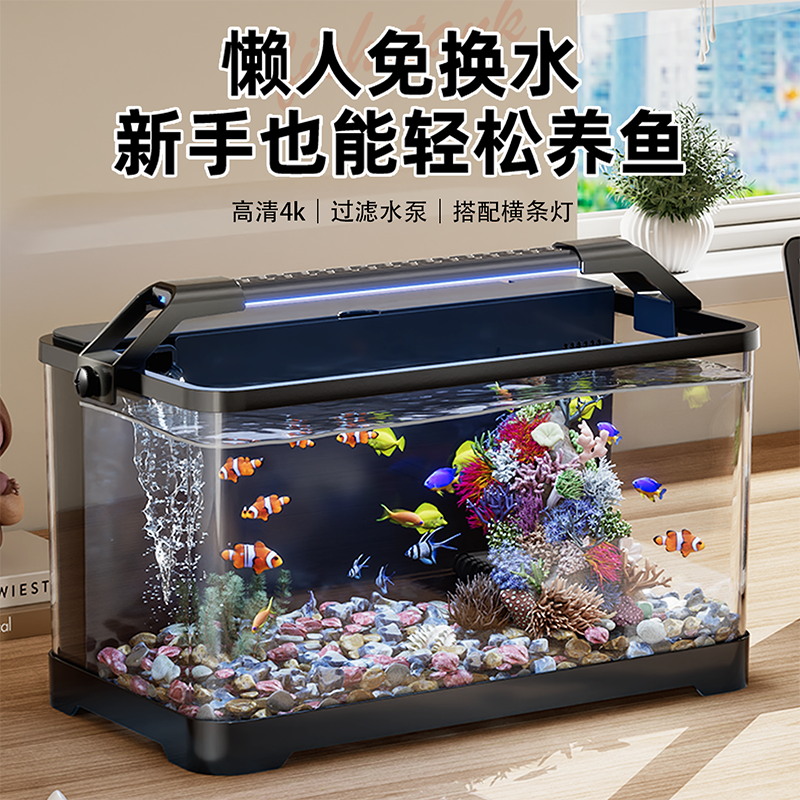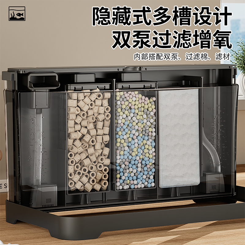 鱼缸小型客厅2026新款过滤制氧一体背滤生态造景免换水家用水族箱