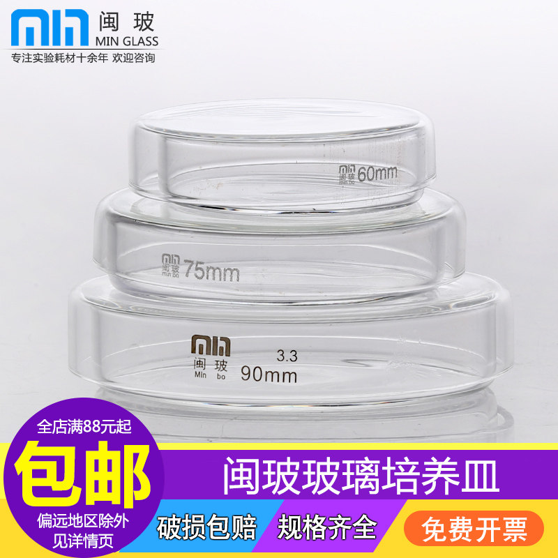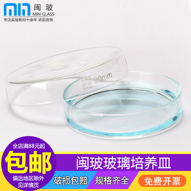 闽玻 耐高温玻璃培养皿90mm高硼硅玻璃皿微生物细胞细菌培养皿植物种子培养皿100mm