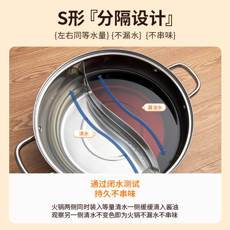 鸳鸯锅/清汤锅304不锈钢电磁炉专用加厚火锅盆火锅锅具家用