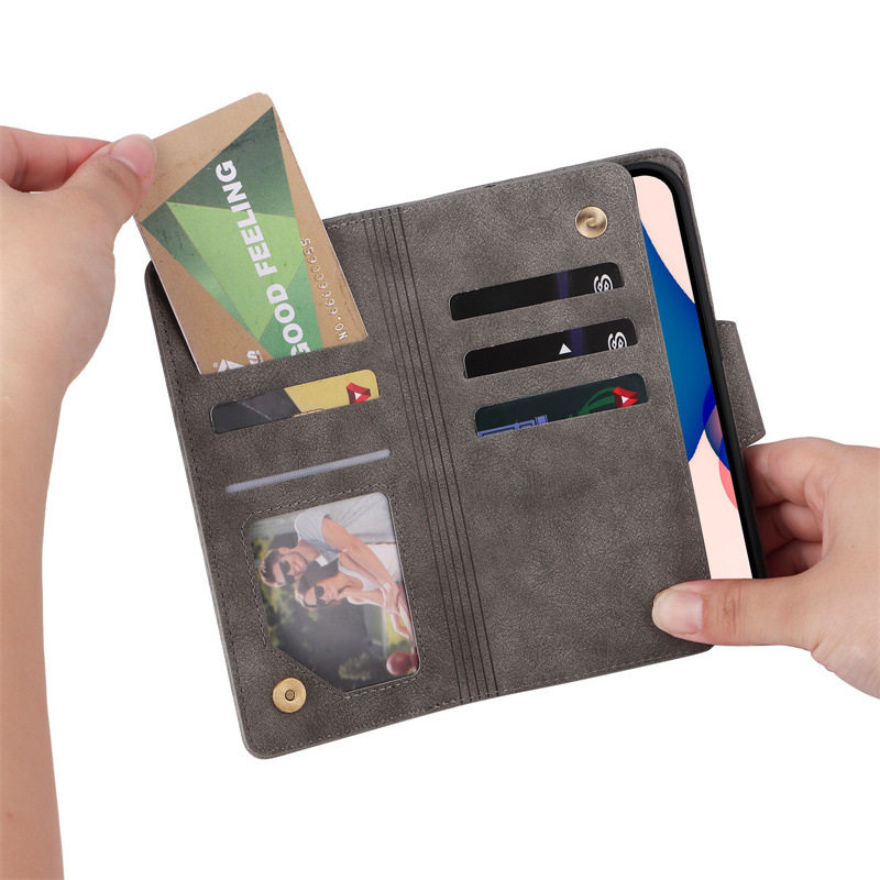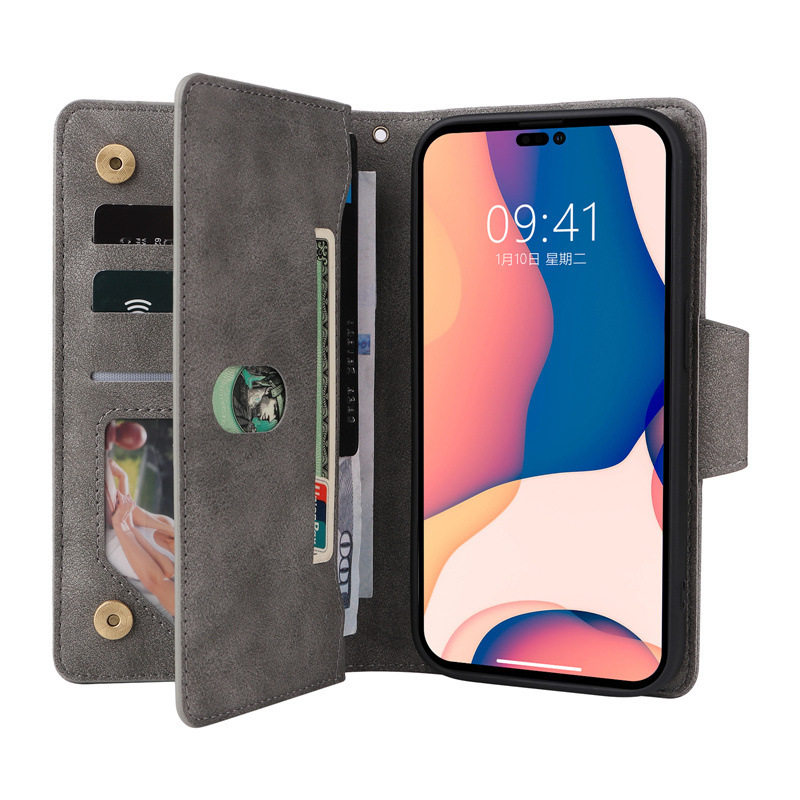 适用iPhone13 14Pro多功能铆钉拉链包手机套挂绳苹果12翻盖保护套