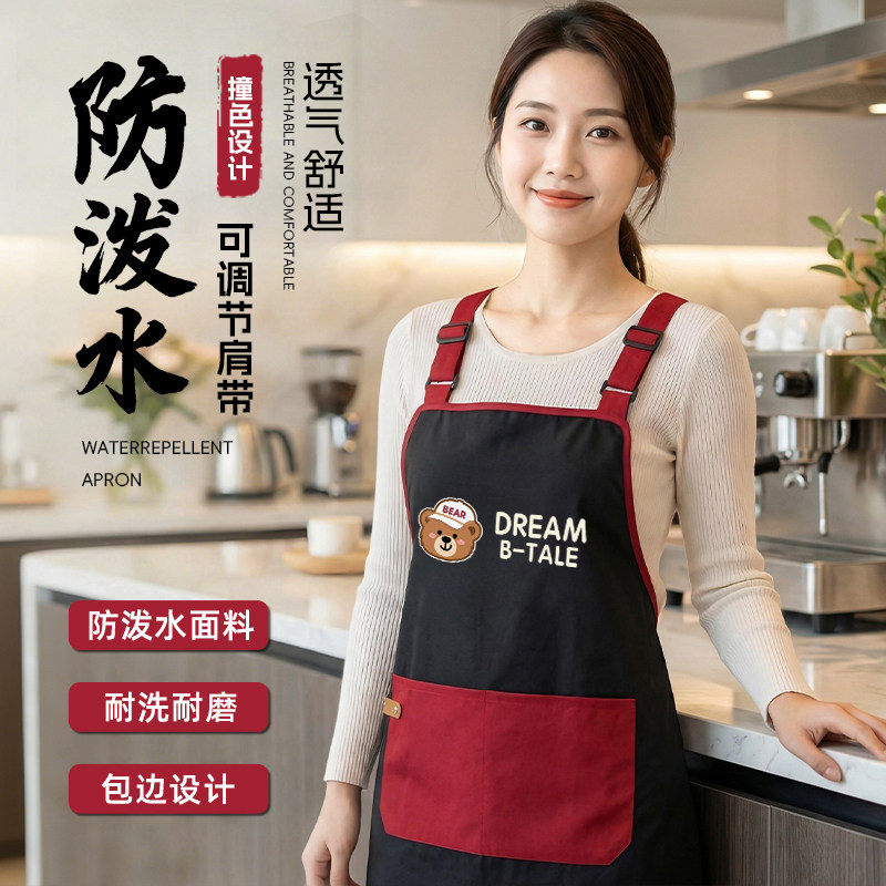 厨房小清新围裙ins风工作服可调节文艺家用防脏定制logo棉麻围腰