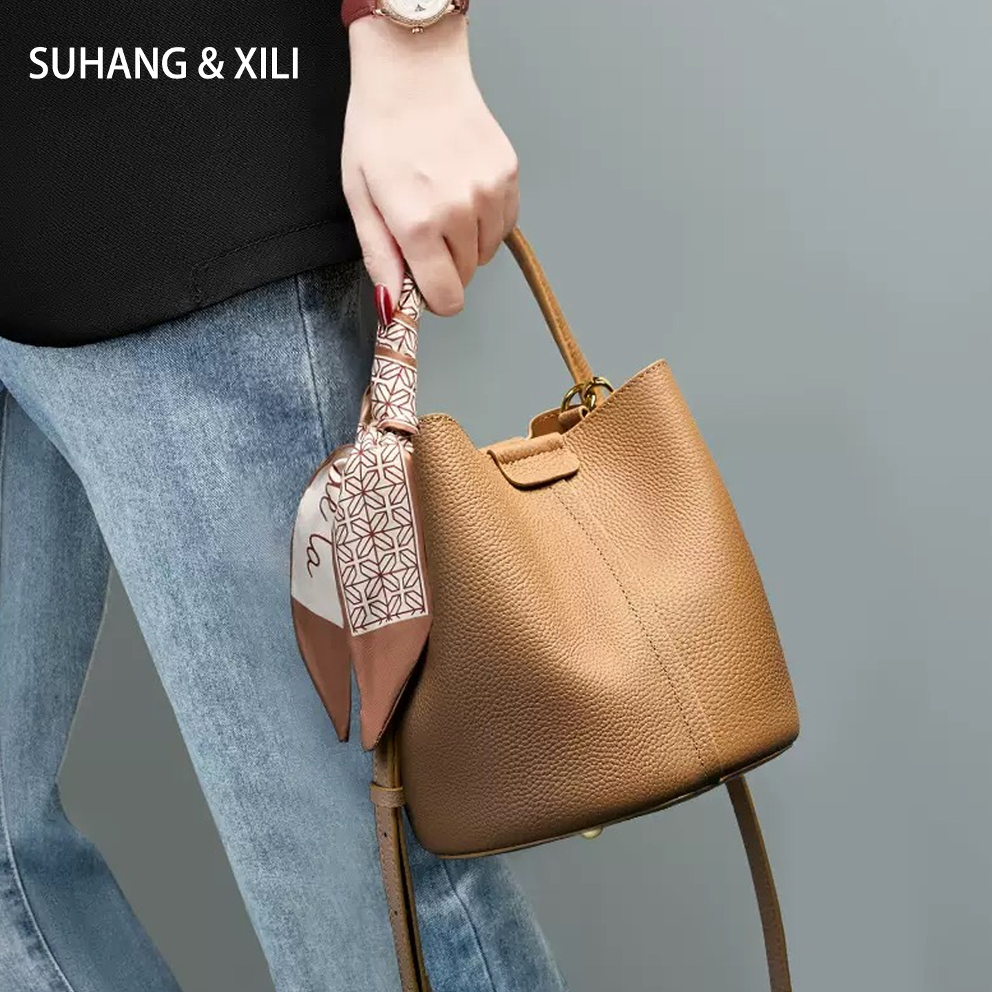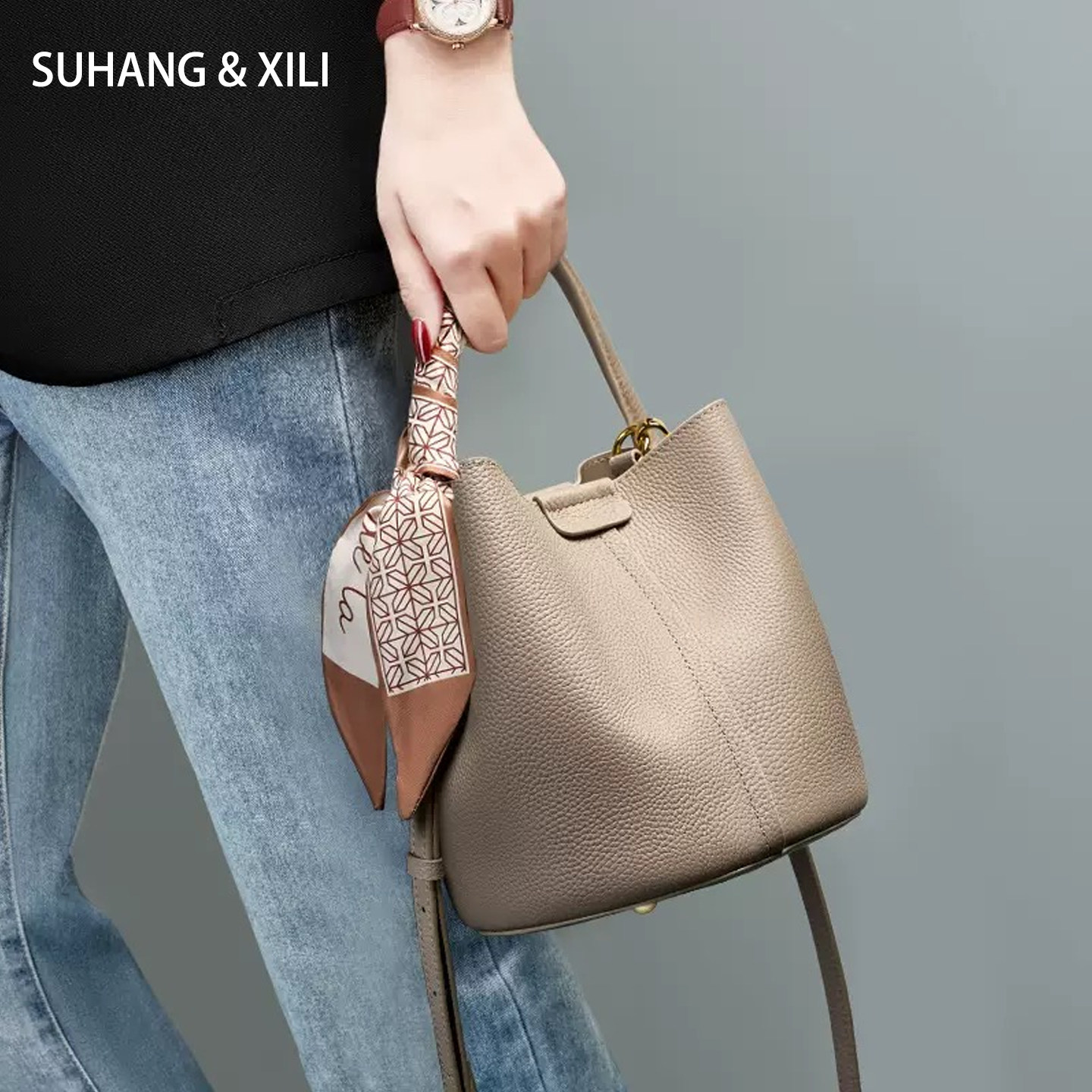 真皮包包女菜篮子头层牛皮水桶包女2026简约百搭单肩斜挎手提包