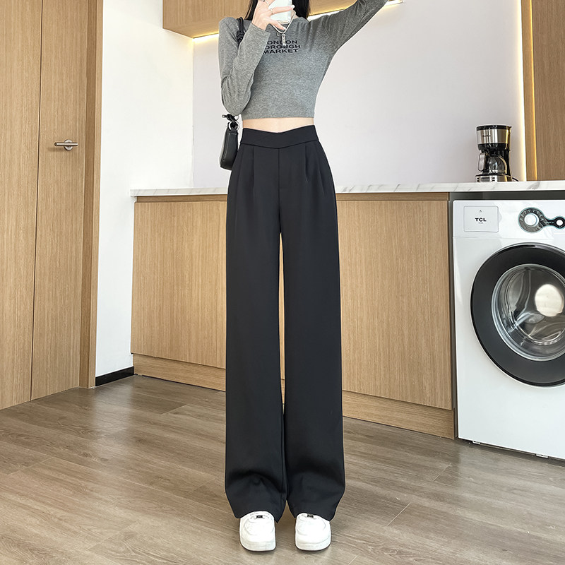 MissWiss直筒裤子女2025新款长裤休闲高腰收腹提臀黑色垂感阔腿裤