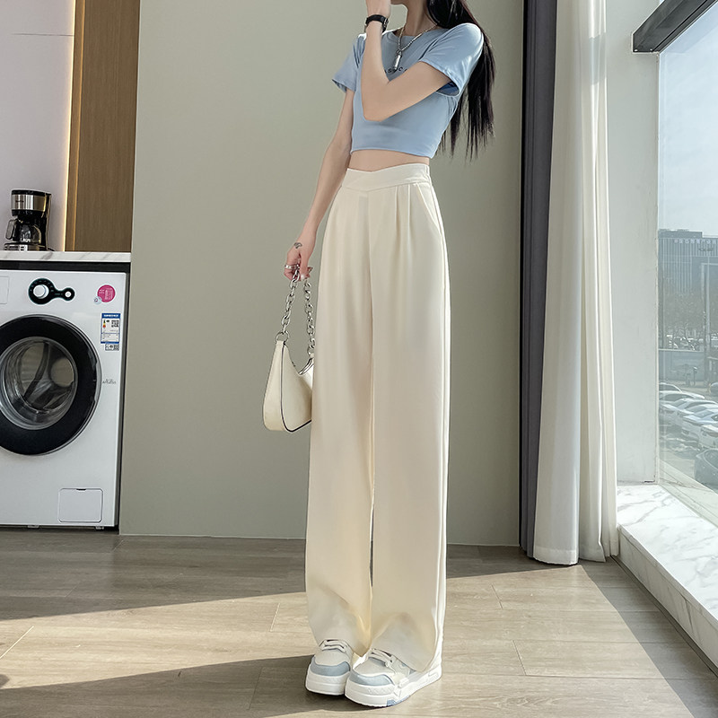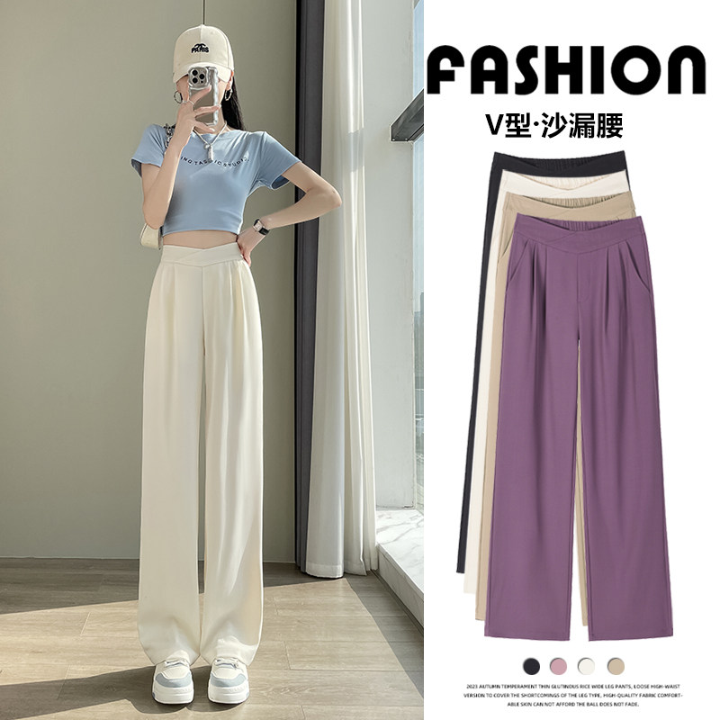 窄版西装裤女高个子夏大码胖mm高腰垂感拖地雪纺阔腿裤加长直筒裤