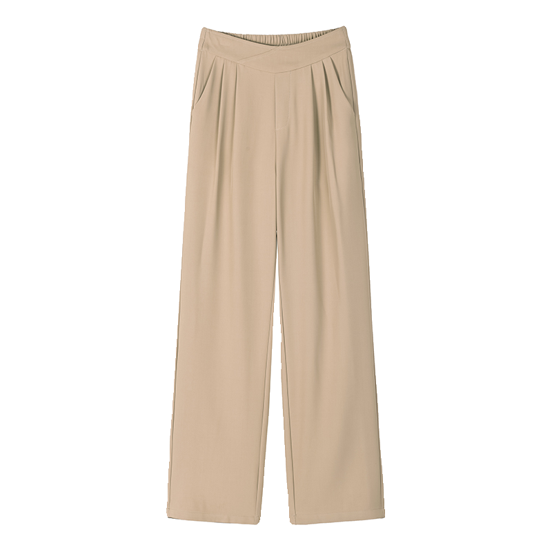 双侧带口袋棉绸绵绸人造棉高腰显瘦直筒裤女宽松休闲百搭阔腿长裤