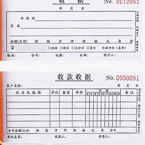 收据一联二联三联多栏无碳复写定制收款单专用票据可定做