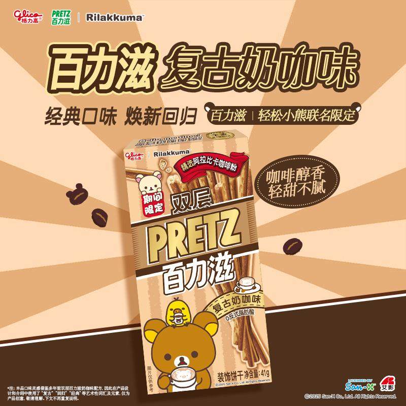 格力高轻松小熊正版授权联名百力滋新口味复古奶咖味饼干零食小吃