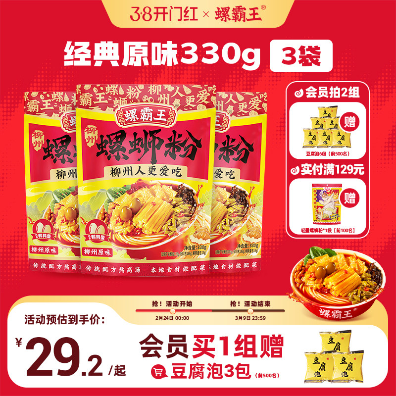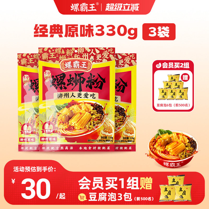 螺霸王螺蛳粉原味3袋螺蛳粉柳州螺蛳粉正宗螺丝粉特产酸辣粉速食