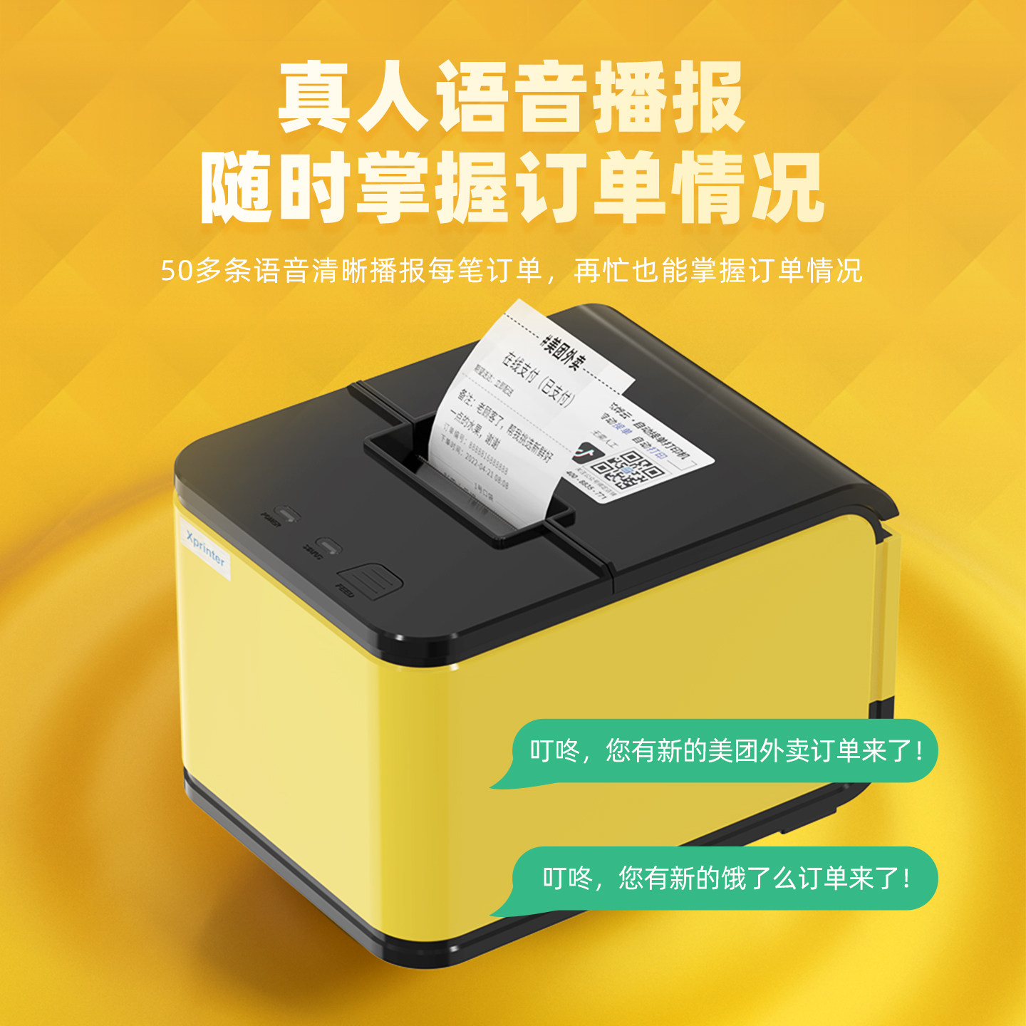 全自动接单美团饿了么淘宝闪购京东蓝牙wifi外卖打印机真人语音热敏票据移动智能便携式专用手机无线云餐饮