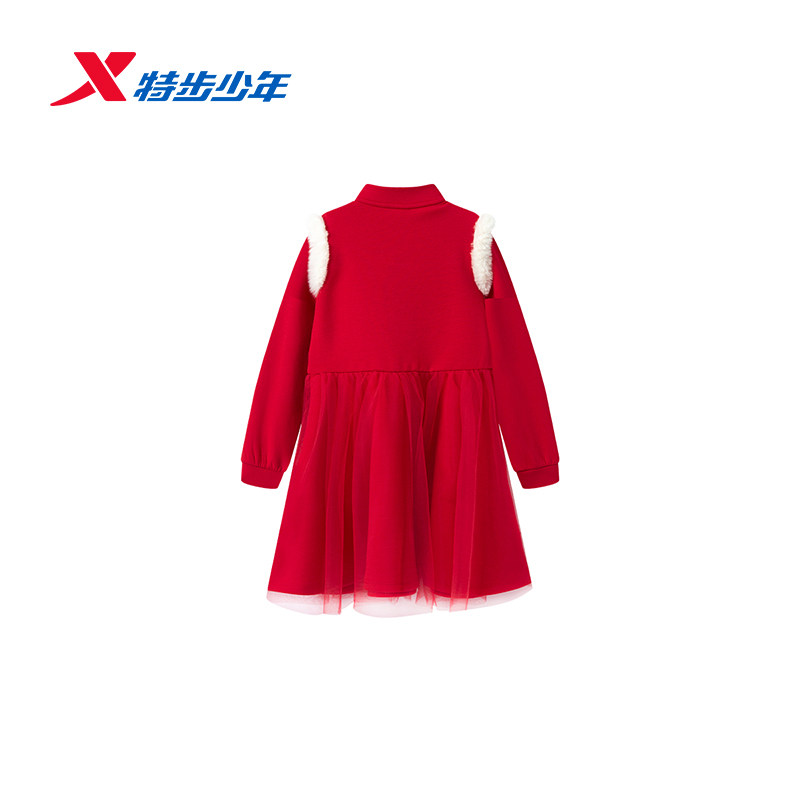 【商场同款】特步童装新年款女小童保暖连衣裙儿童运动亲肤连衣裙