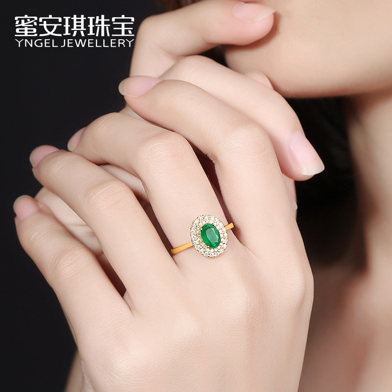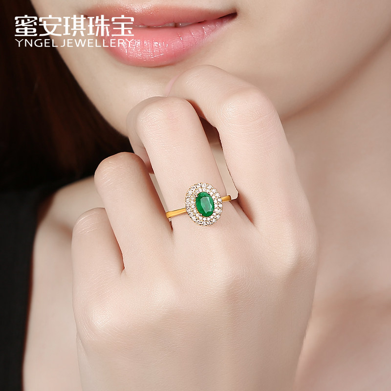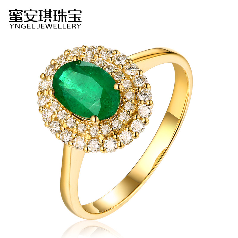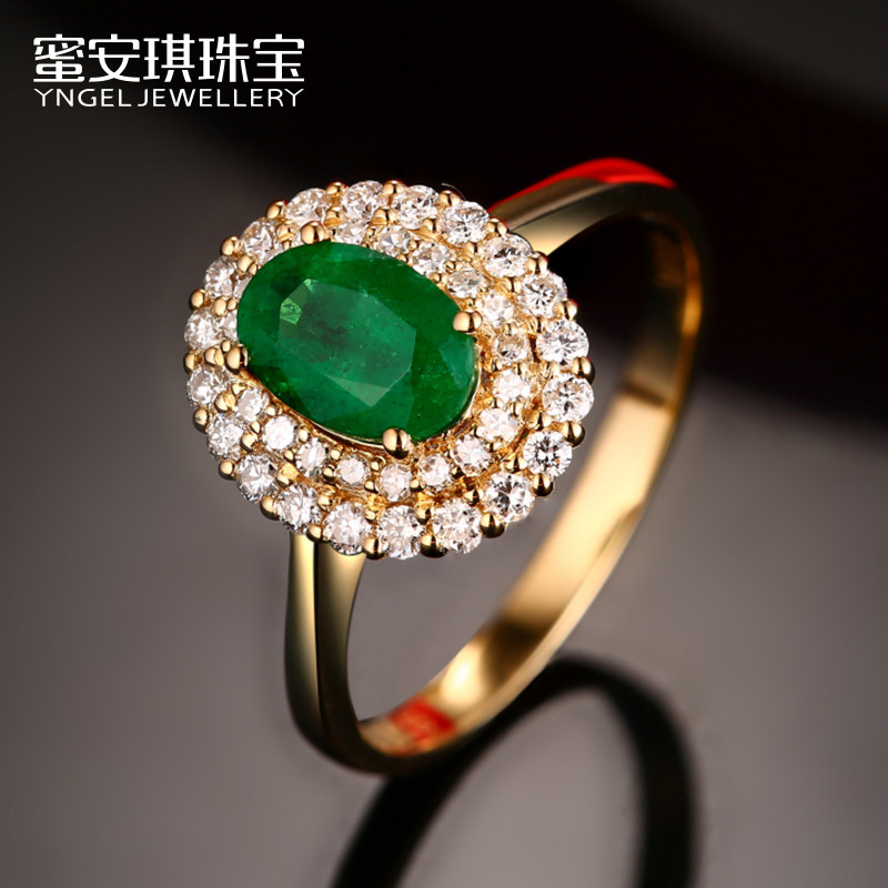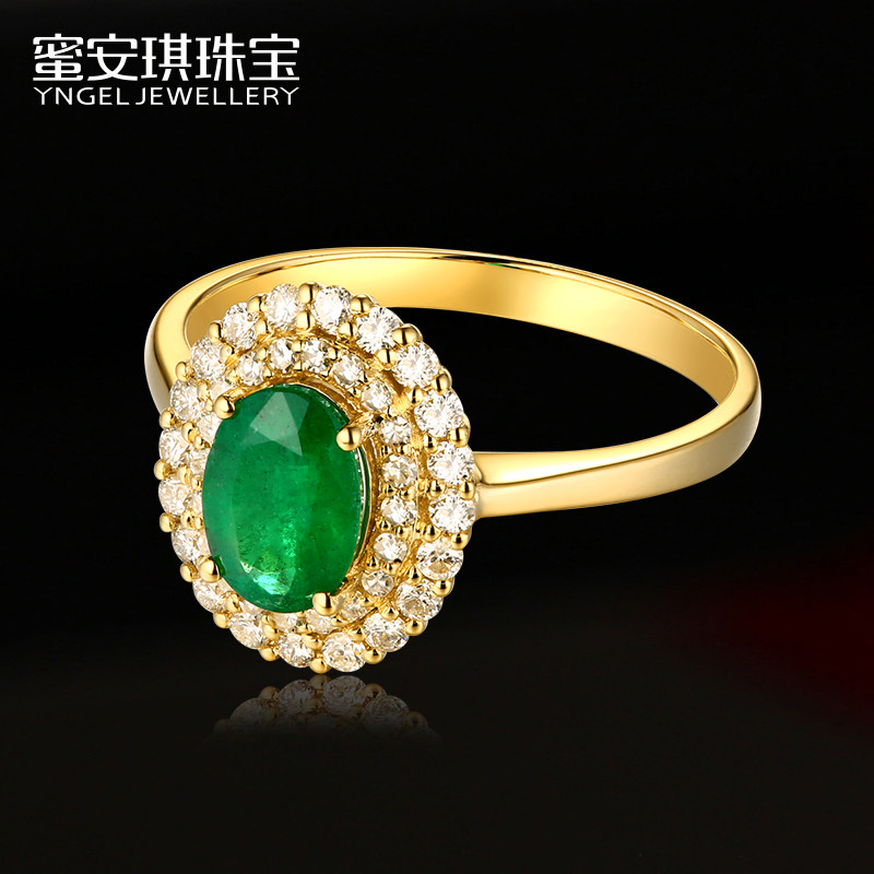 蜜安琪 哥伦比亚天然祖母绿戒指 18K黄金钻石镶嵌 轻奢彩宝女手饰
