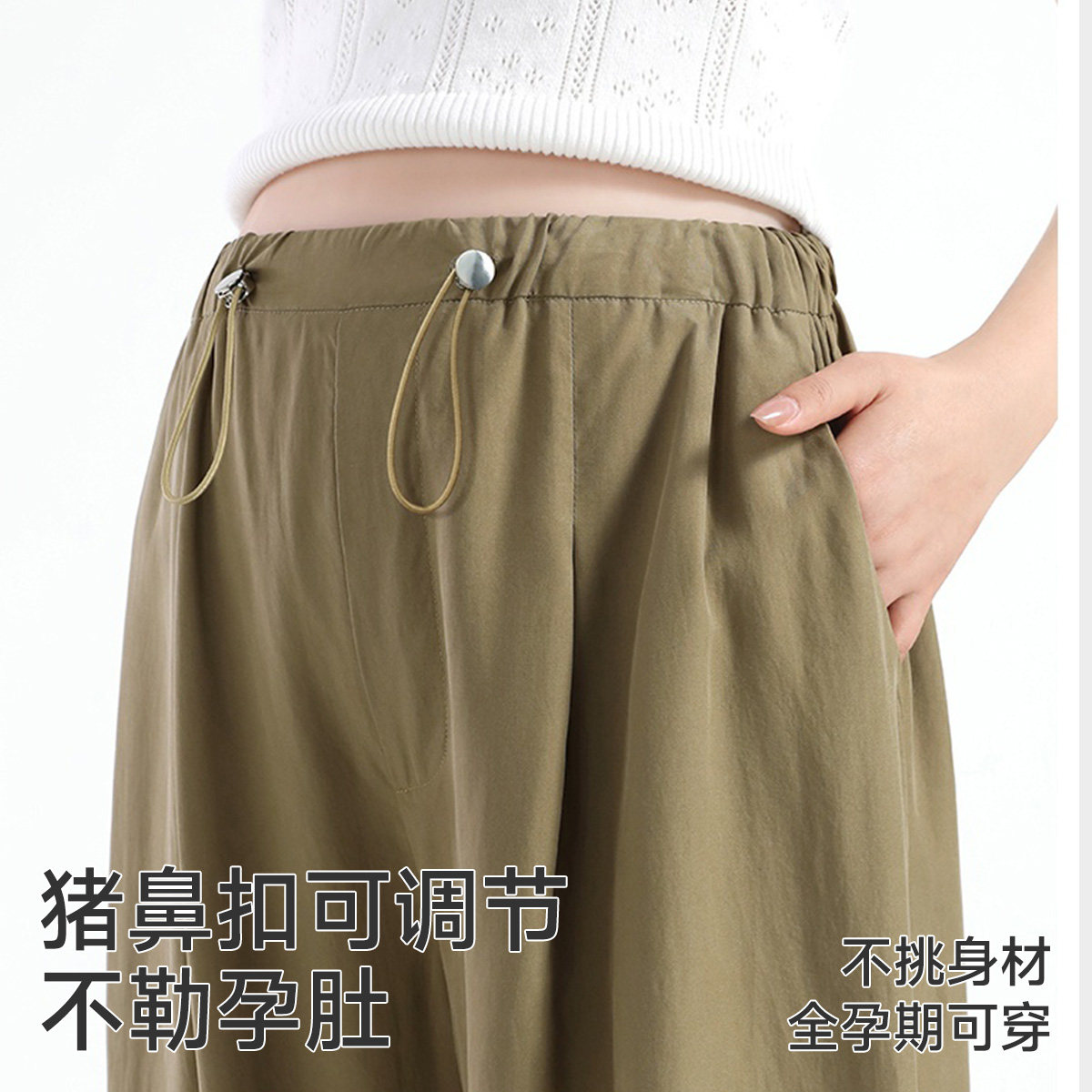 婧麒孕妇裤春夏2026新款小个子外穿不勒肚子山本阔腿裤无托腹长裤