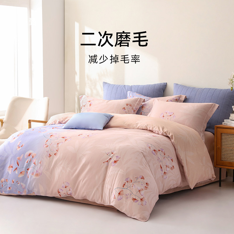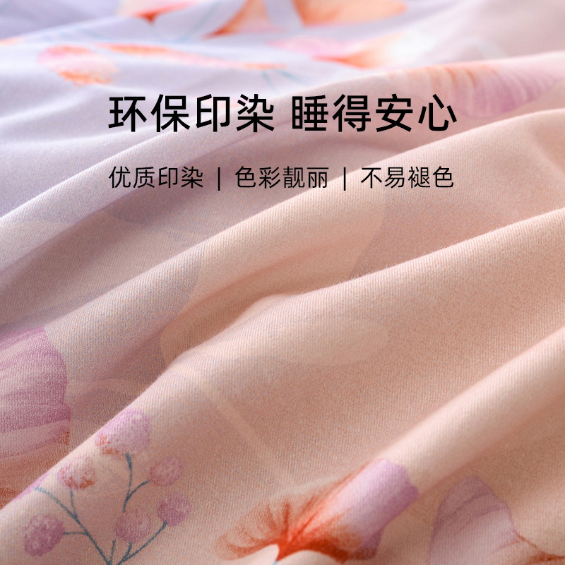 梦洁家纺全棉磨毛三四件套纯棉被套秋冬季床单加厚被单床上用品