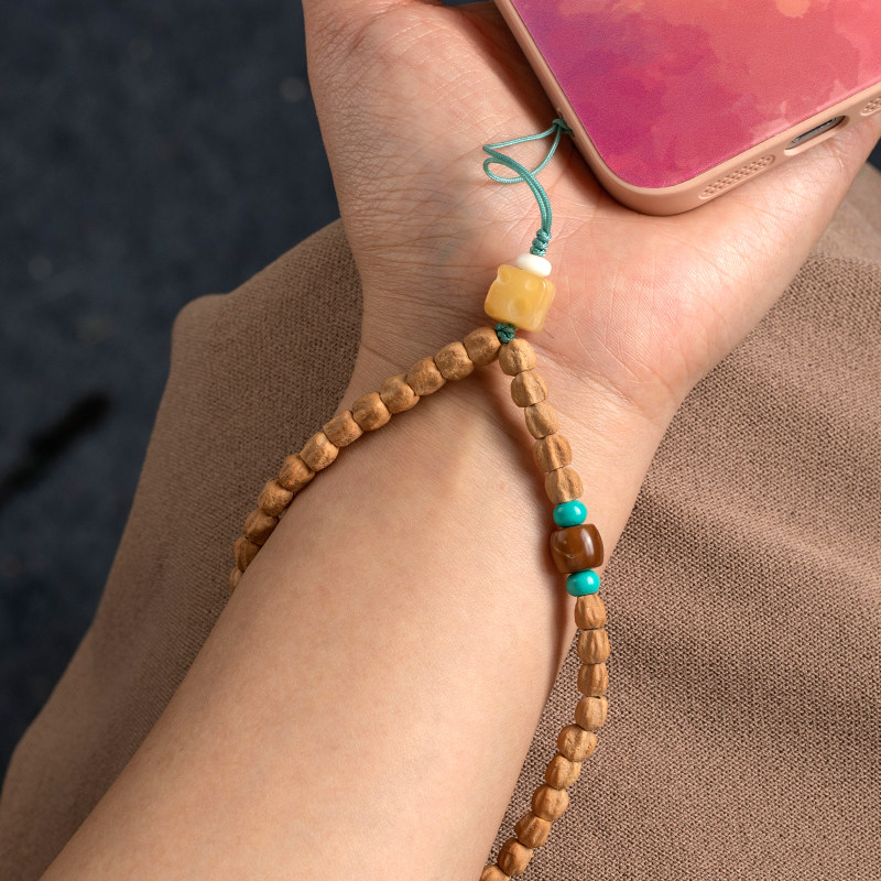 原创禅意百香籽钥匙扣清新高级感蜜蜡手机链手腕款车钥匙挂件女款cdd相机挂绳包包挂件绳精致防丢绳子