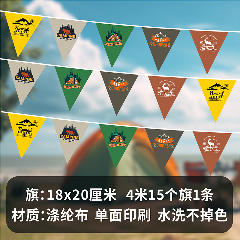 新款露营三角旗营地彩旗装饰布置户外天幕用品公园野餐小旗帜野外野炊氛围串旗吊旗横幅定制条幅手拉旗订做