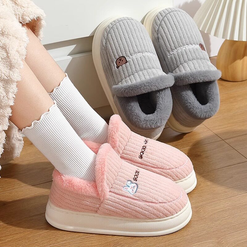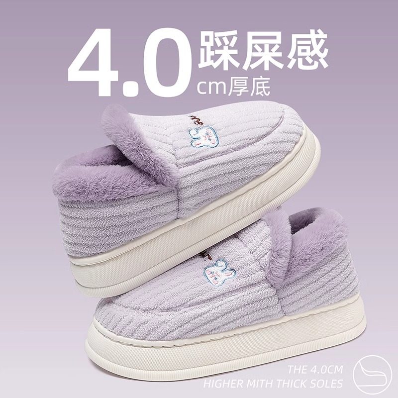 红豆踩屎感棉拖鞋女士秋冬季室内家居2025新款毛绒保暖情侣棉拖男