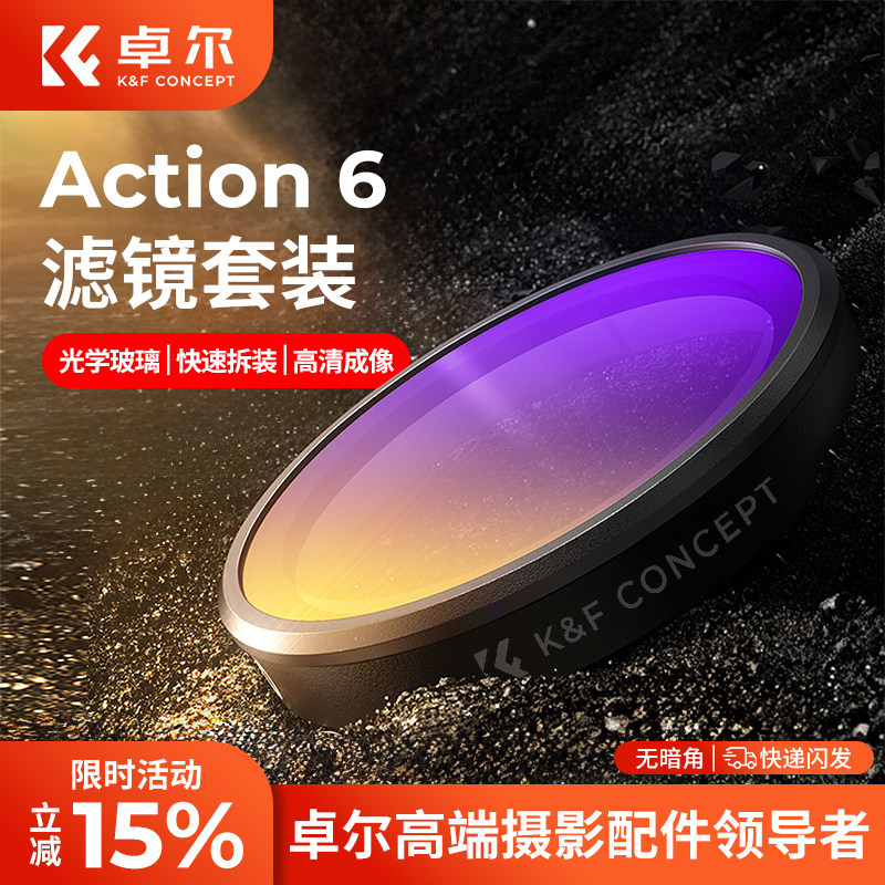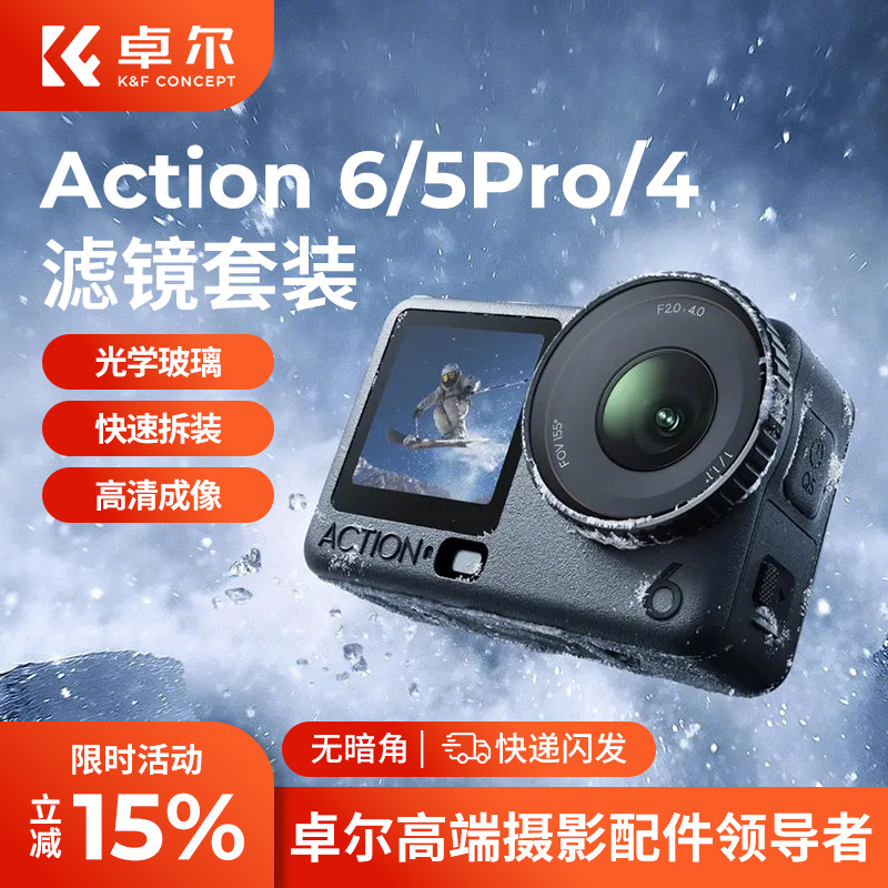 卓尔适用大疆Action6滤镜DJI action5PRO/4 CPL偏振镜黑柔nd滤镜ND8/16/32减光镜镜头增广UV新款运动相机配件