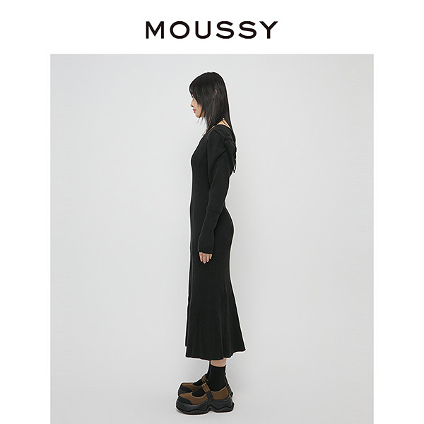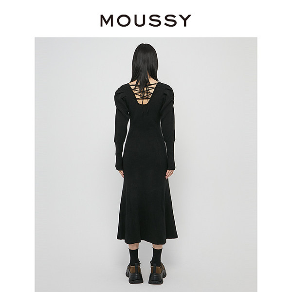 MOUSSY 秋季新品浪漫主义高贵感显瘦针织连衣裙010FA770-6440