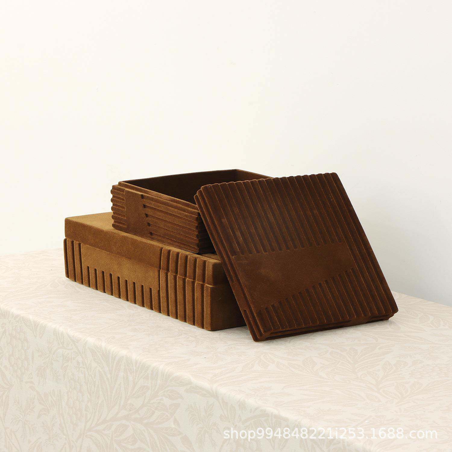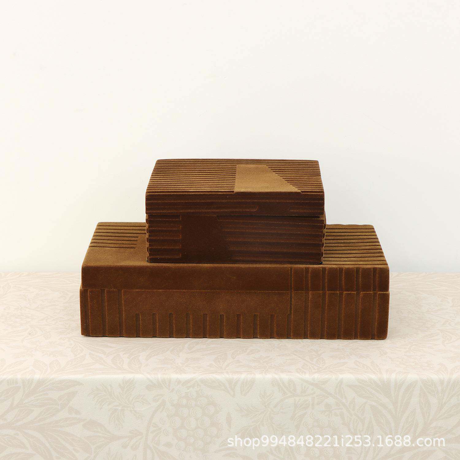 现代简约植绒几何收纳盒盒卧室梳妆台首饰盒样板间软装饰品摆件