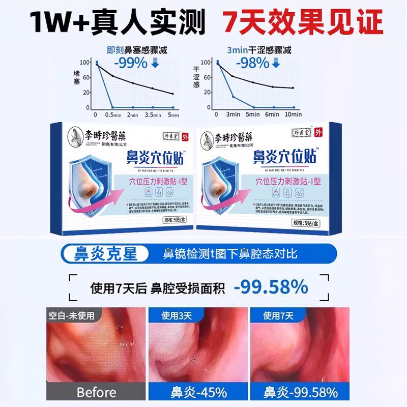李时珍鼻炎贴鼻塞通鼻神器通气鼻贴儿童成人过敏性鼻炎官方旗舰店