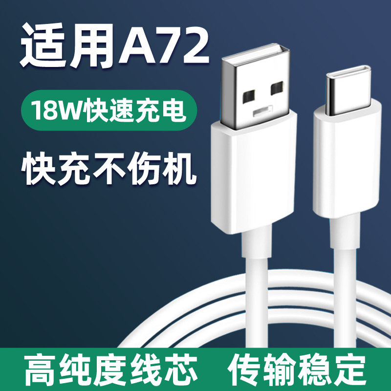 适用oppoA72充电线闪充线A72加长数据线 A72手机快充充电头器18w