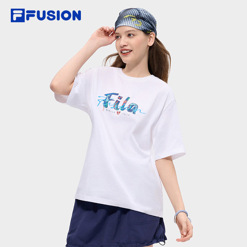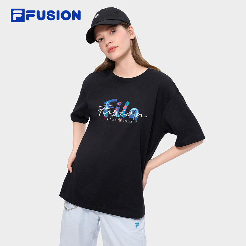 FILA FUSION斐乐潮牌情侣款针织短袖衫夏新款凉感纯棉T恤男女