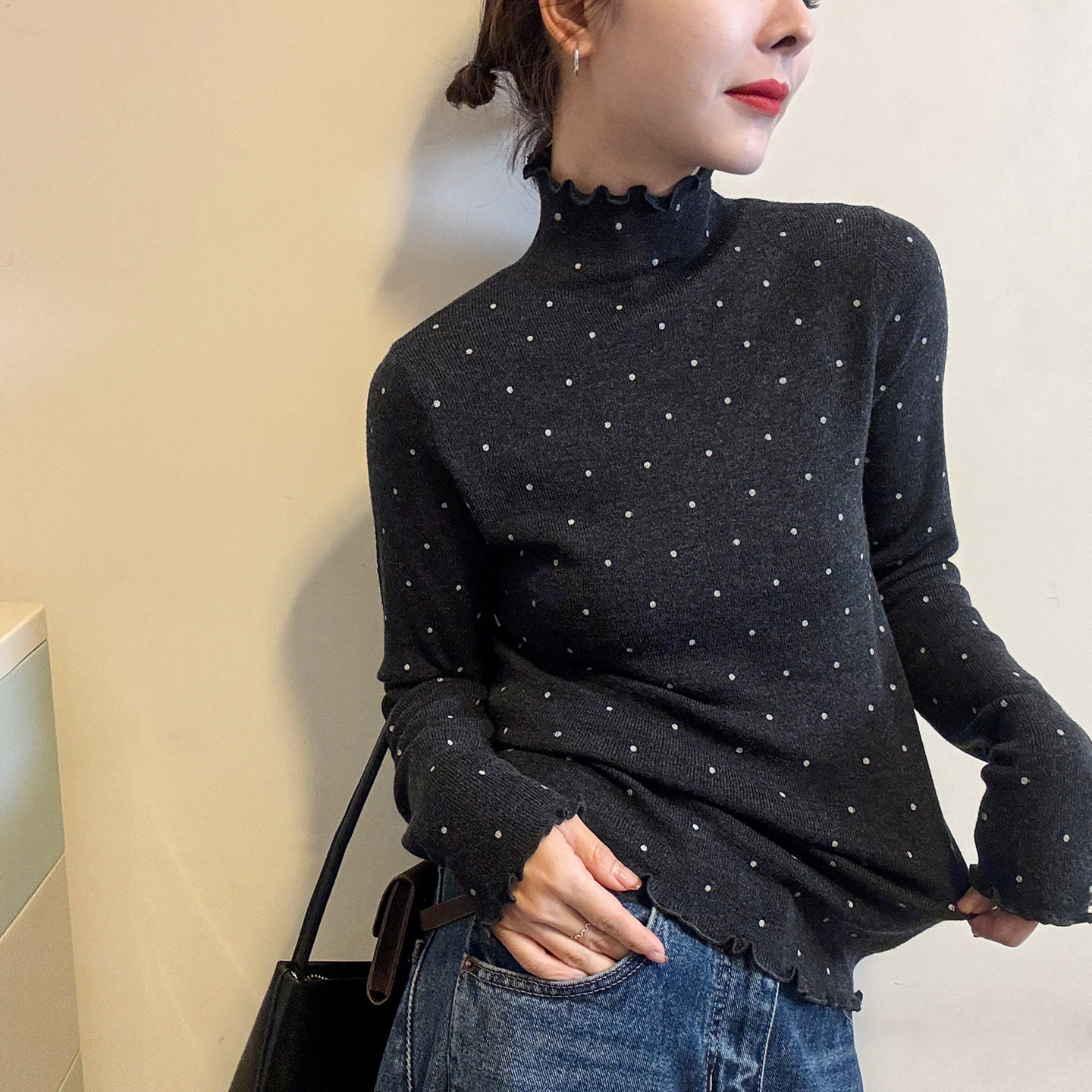 木耳边高领细羊毛针织衫女欧洲站2025冬装新款欧货女装打底小衫潮