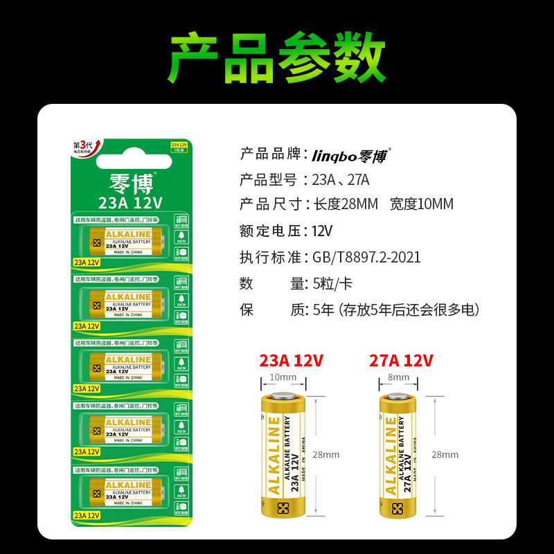 23A干电池电子防盗器电池引闪器门铃卷帘门遥控器碱性电池27A车库门卷闸门遥控器电池12v吊灯吊扇风扇电池