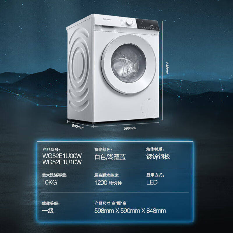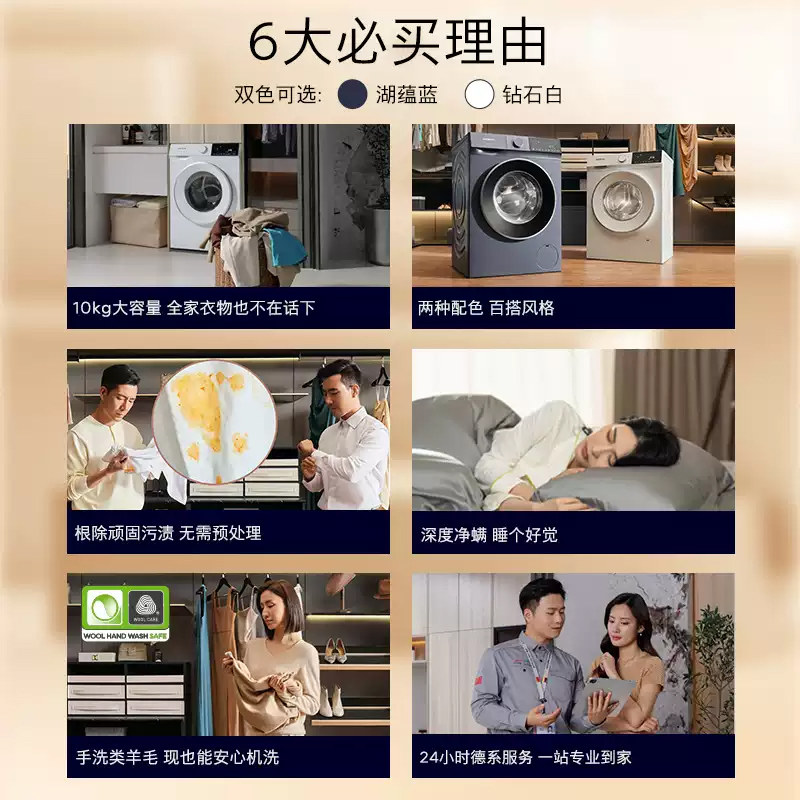 【蓝宝石】西门子10公斤家用全自动滚筒洗衣机智能除渍羊毛洗1U00