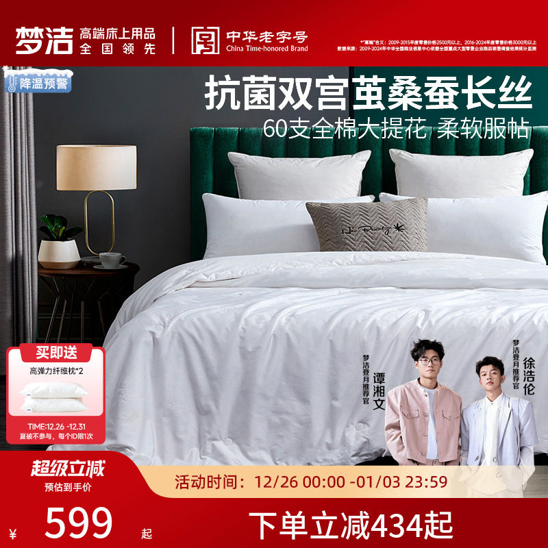梦洁家纺100桑蚕丝被子被芯春秋被抗菌四季通用冬被二合一子母被