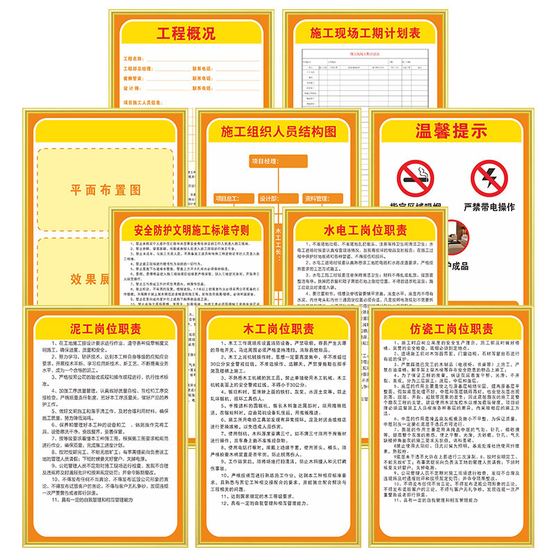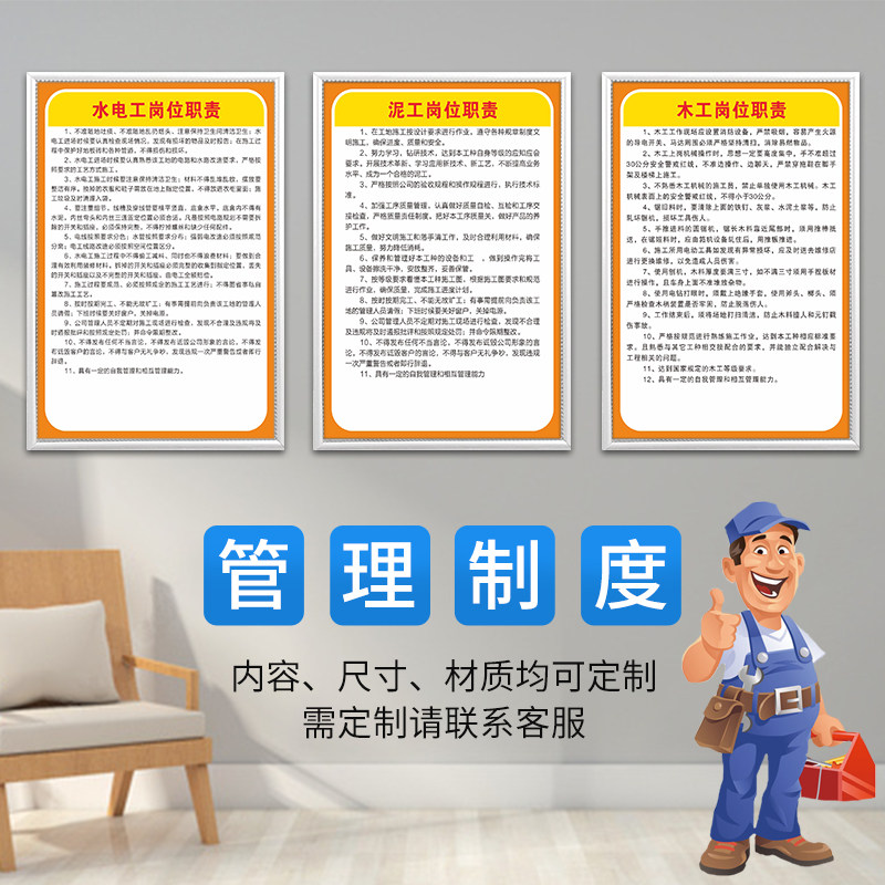 装修公司施工管理制度牌工地装饰家装工装工程建筑规章规范现场平面布置木工泥工油漆工岗位责任制安全标识牌