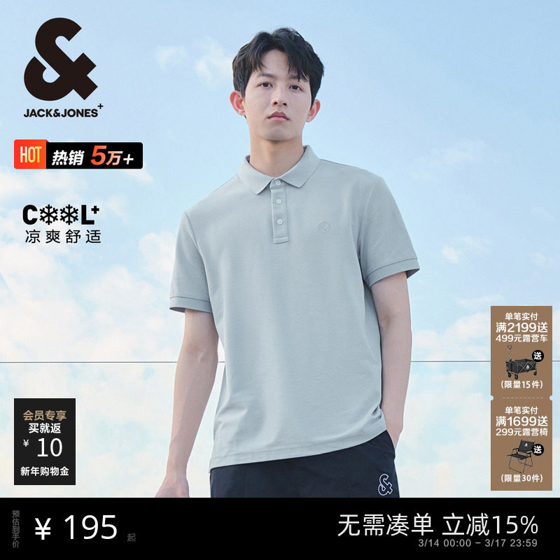 [凉感]杰克琼斯春夏季男装Polo衫新款商务休闲翻领半短袖T恤上衣