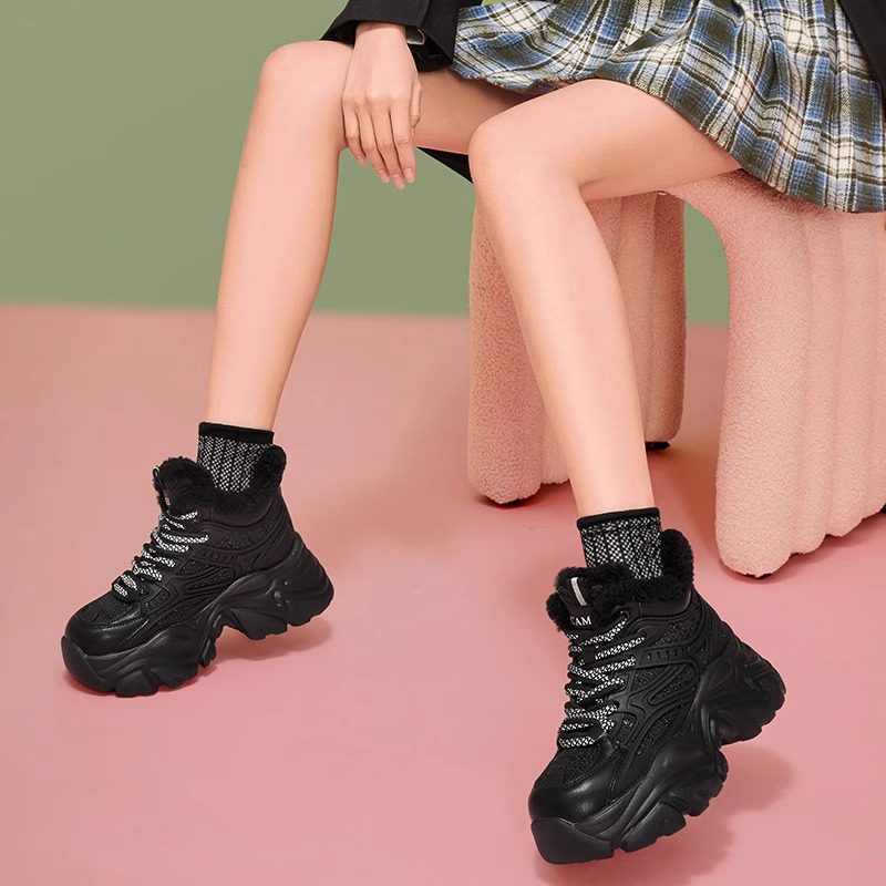 miu家厚底雪地靴女冬季真皮短靴羊毛侧拉链增高厚底加绒毛毛棉鞋