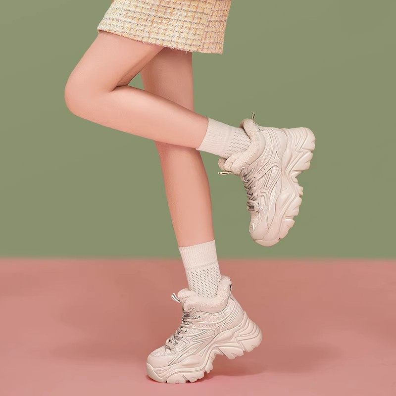 斯凯奇面包鞋|加绒保暖雪地靴女棉靴冬靴高帮棉鞋厚底内增高短靴