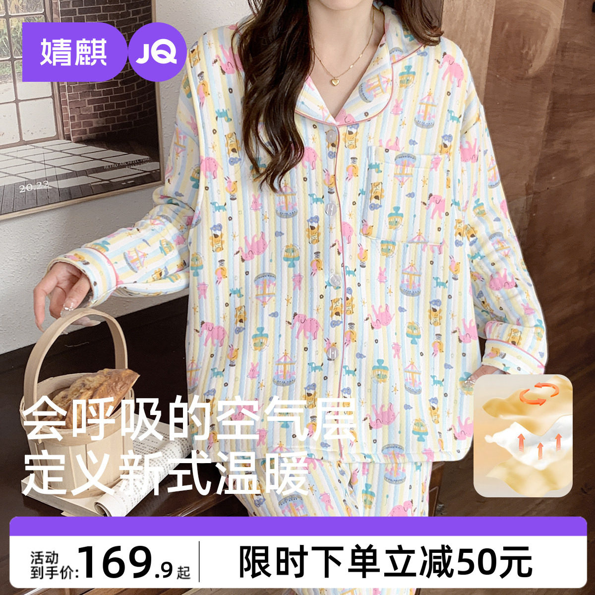 空气棉月子服秋冬季纯棉产后12月份全棉吸汗喂奶产妇哺乳孕妇睡衣