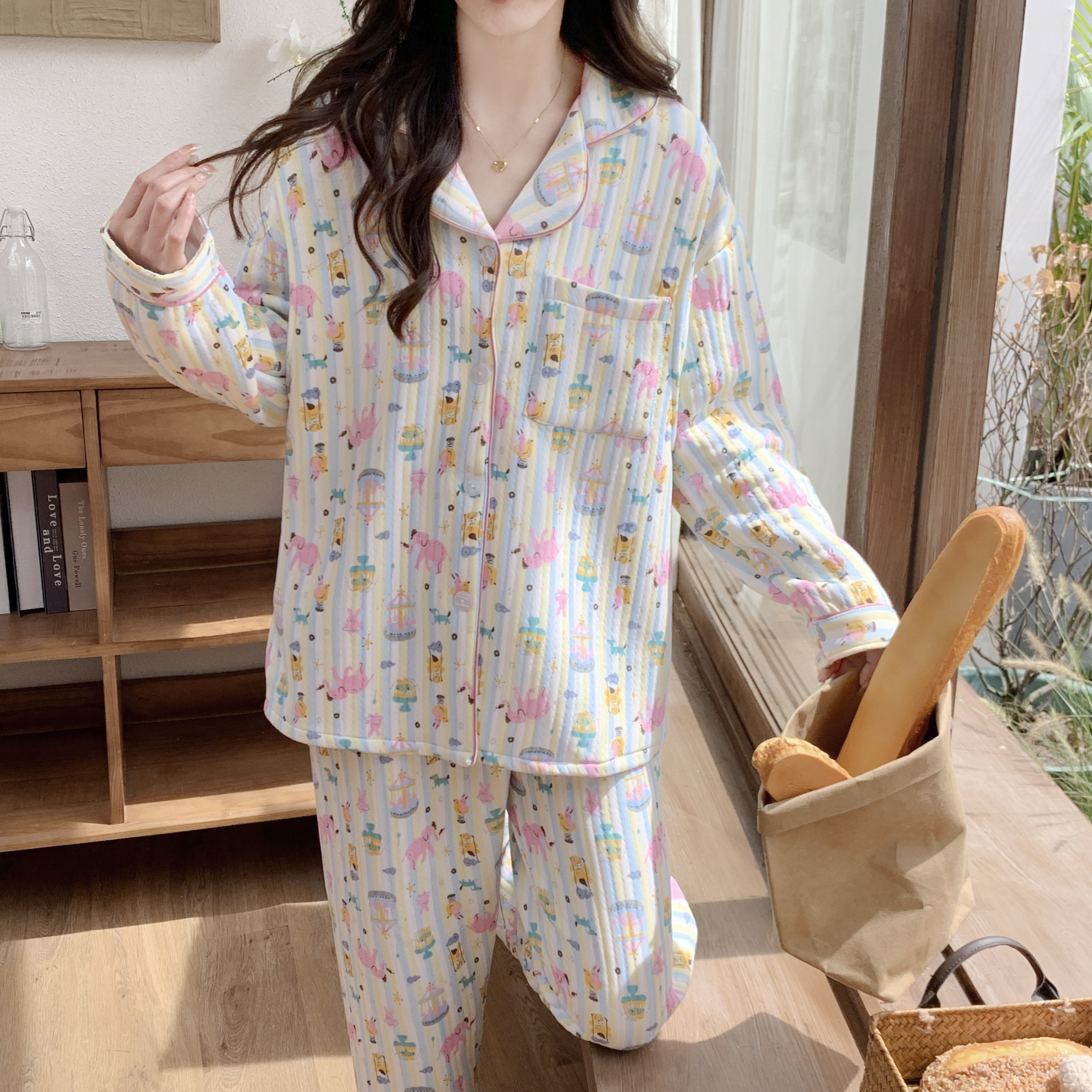 空气棉月子服秋冬产后纯棉加厚款产妇哺乳睡衣冬季孕期孕妇家居服