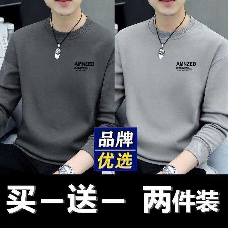 品牌男装纯棉卫衣男士休闲长袖t恤秋冬圆领加绒加厚打底百搭上衣