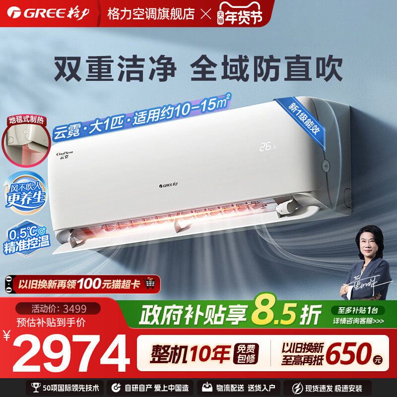 【Gree/格力官方】新一级大1匹变频冷暖家用健康舒适空调挂机云霓